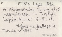 PETRIK Lajos 1892 A Kárbunkulus torony első megmászása.
