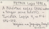 PETRIK Lajos 1892 a A Fehértavi csúcs (2236 méter a tenger szine felett).