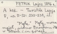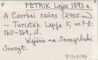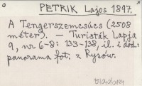 PETRIK Lajos 1897 A Tengerszemcsúcs (2508 méter).