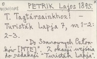 PETRIK Lajos 1896 Tisztázzuk az eszméket. (Az Országos Turista-Kongresszus alkalmából).