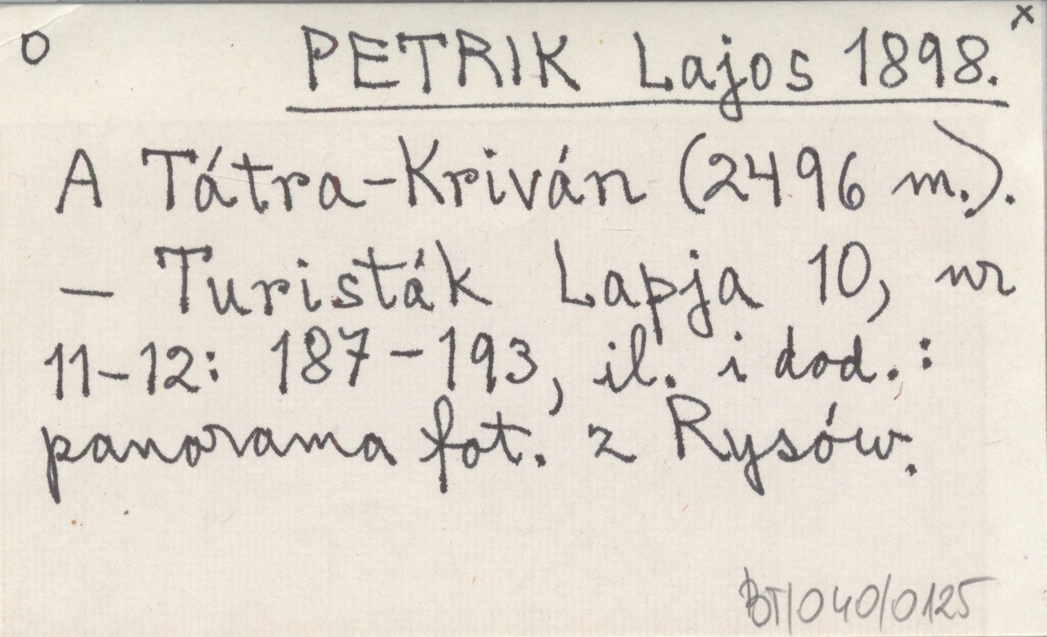 Turisták Lapja, 10, nr 11-12: 187-193, il. Dodatkowo panorama fot. z Rysów.