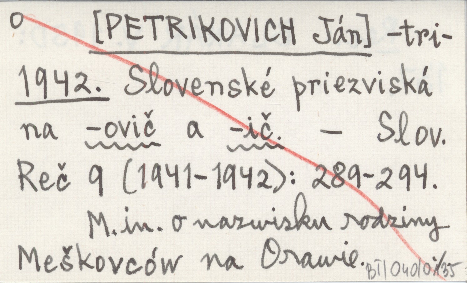 -tri- [PETRIKOVICH Ján] 1942 Slovenské priezviská na -ovič a -ič.