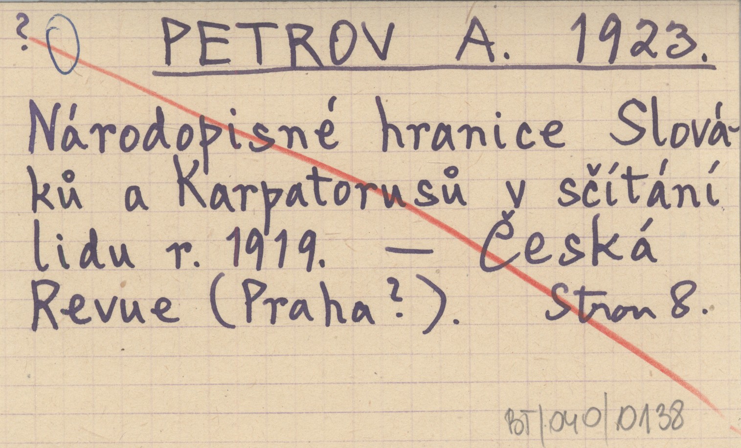 PETROV A. 1923 Národopisné hranice Slováků a Karpatorusů v sčítání lidu r. 1919.