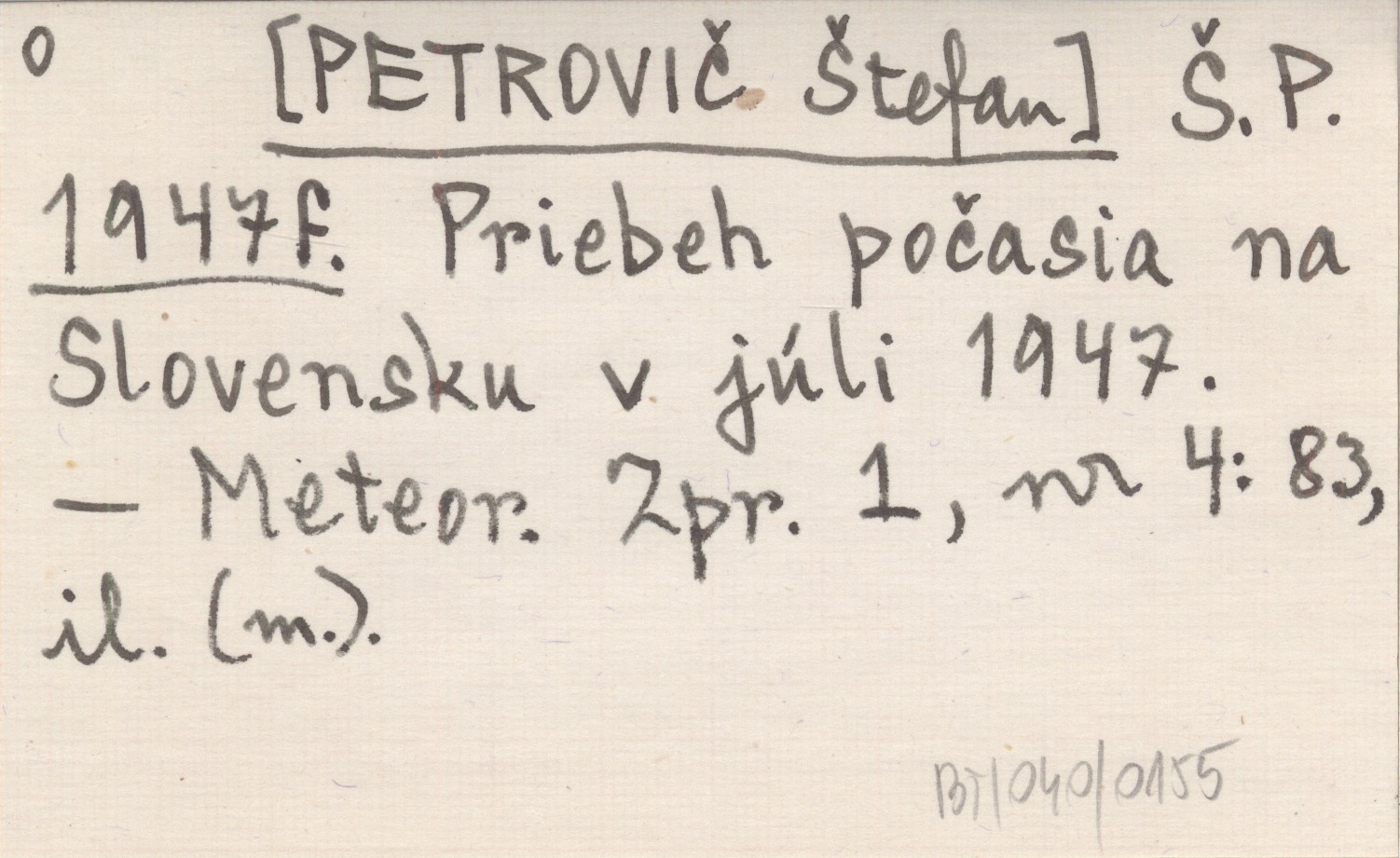 Š. P. [PETROVIČ Štefan] 1947 f Priebeh počasia na Slovensku v júli 1947.