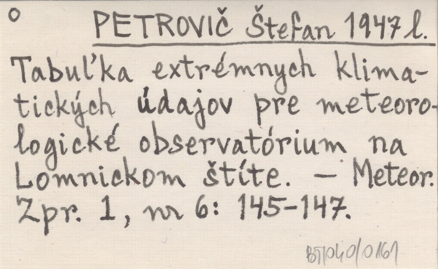 Meteorologické Zprávy, 1, nr 6: 145-147.
