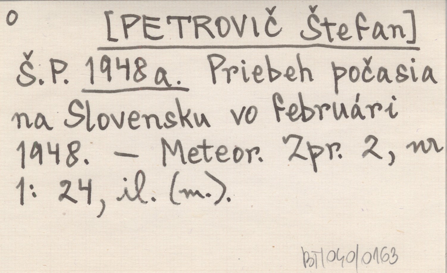 Š. P. [PETROVIČ Štefan] 1948 a Priebeh počasia na Slovensku vo februári 1948.
