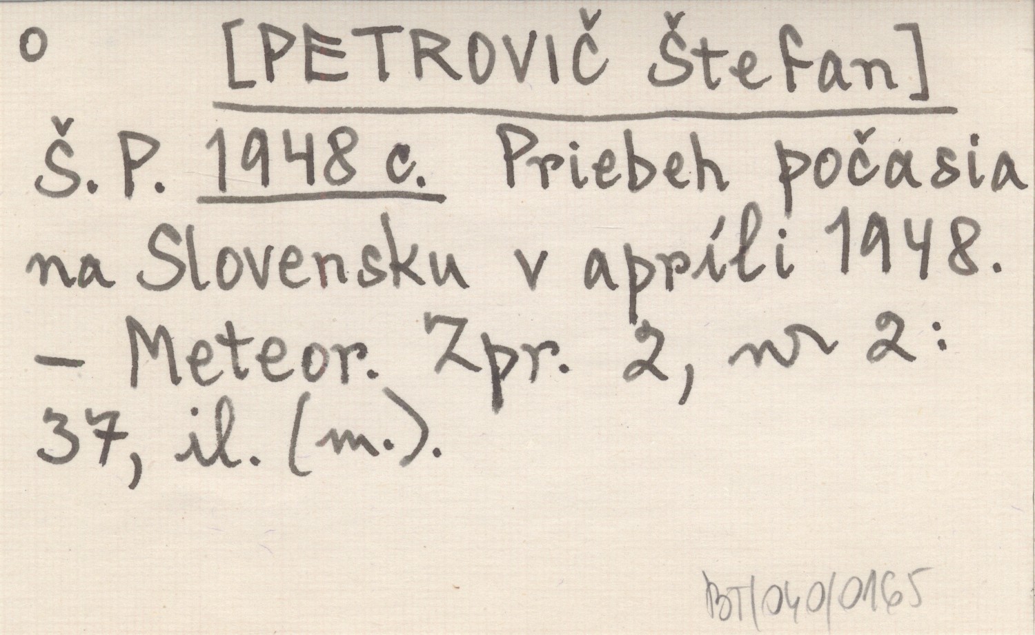 Š. P. [PETROVIČ Štefan] 1948 c Priebeh počasia na Slovensku v apríli 1948.
