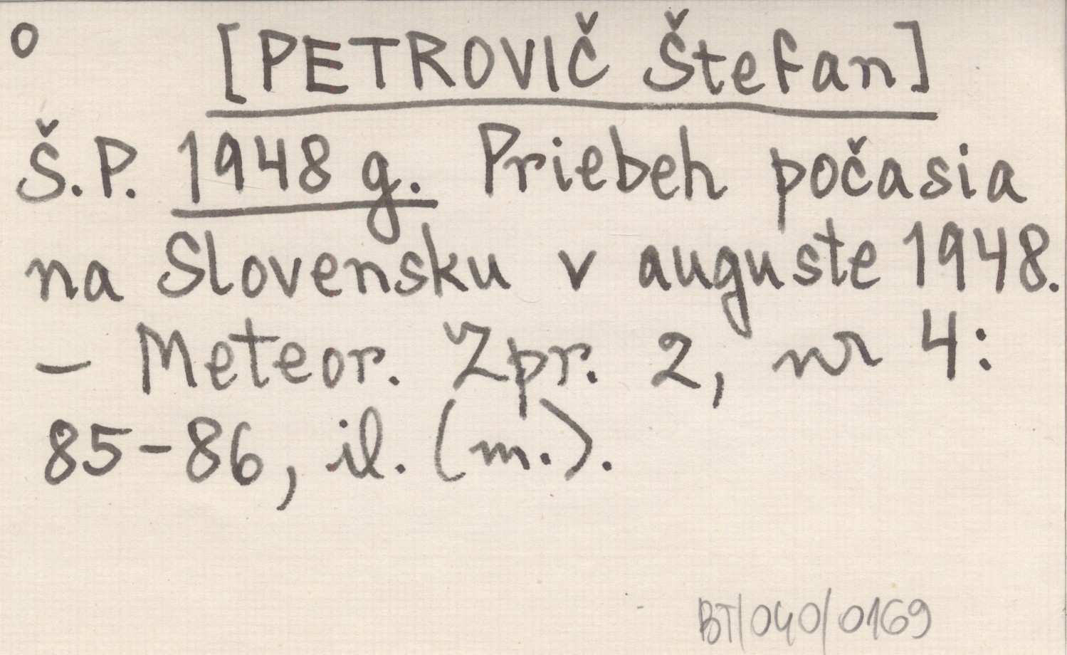 Š. P. [PETROVIČ Štefan] 1948 g Priebeh počasia na Slovensku v auguste 1948.