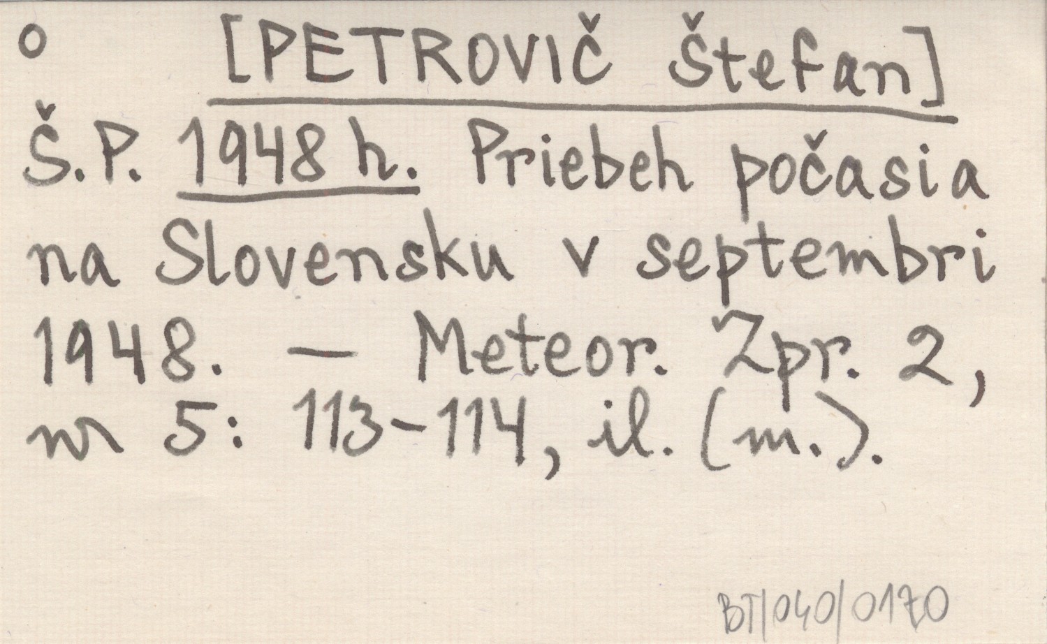 Š. P. [PETROVIČ Štefan] 1948 h Priebeh počasia na Slovensku v septembri 1948.