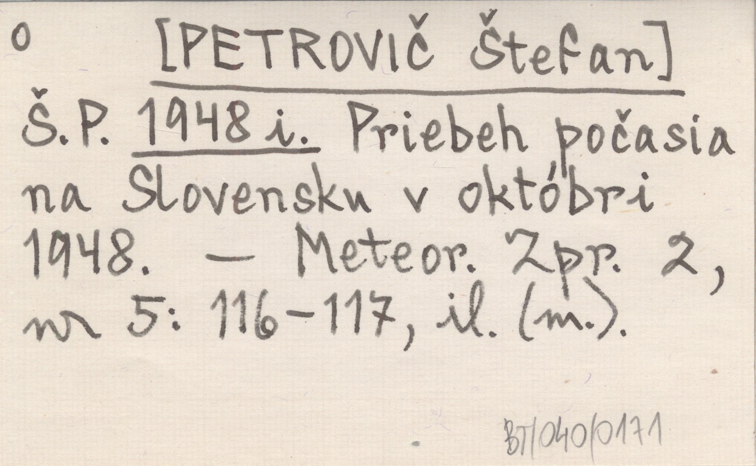 Š. P. [PETROVIČ Štefan] 1948 i Priebeh počasia na Slovensku v októbri 1948.