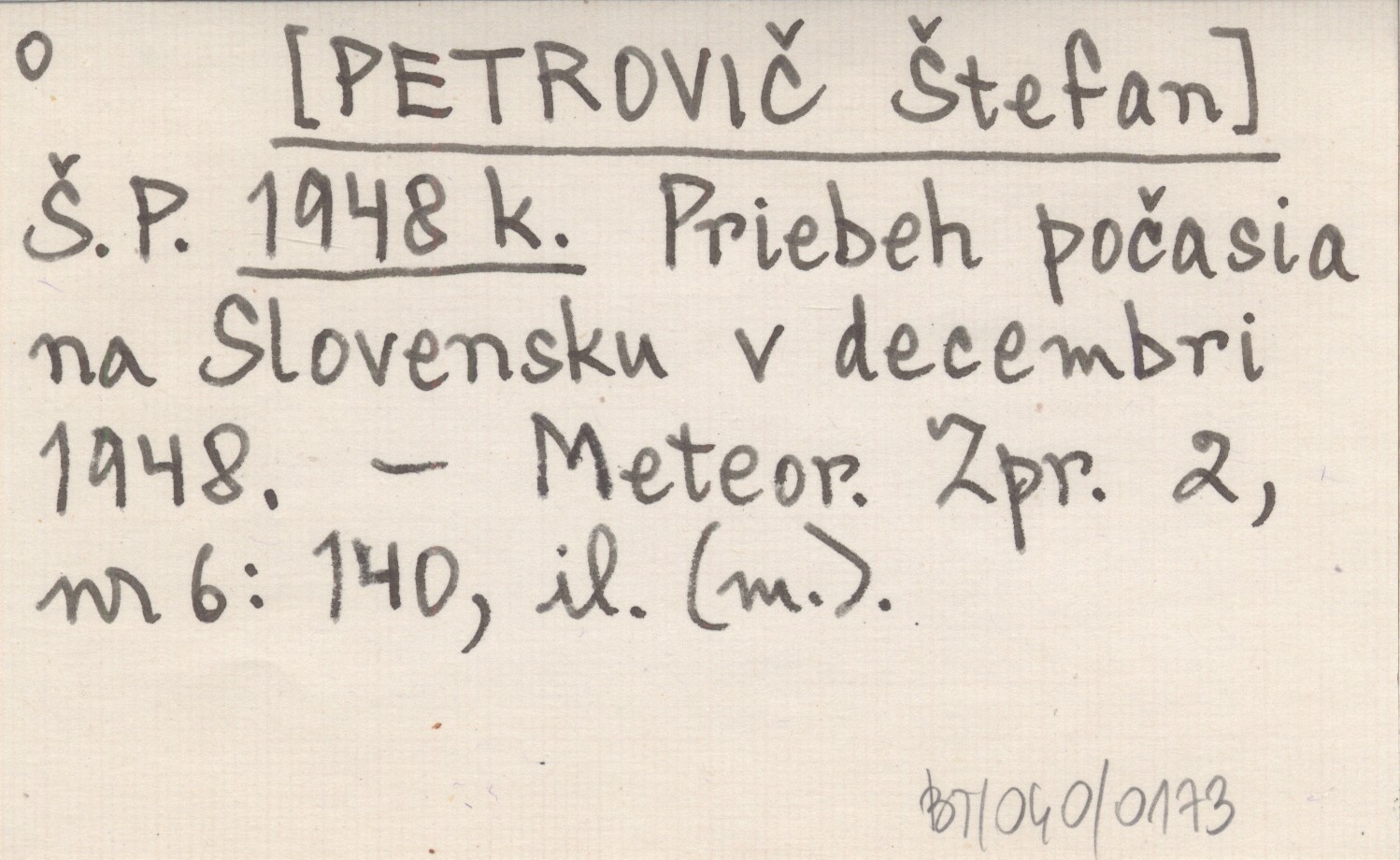 Š. P. [PETROVIČ Štefan] 1948 k Priebeh počasia na Slovensku v decembri 1948.