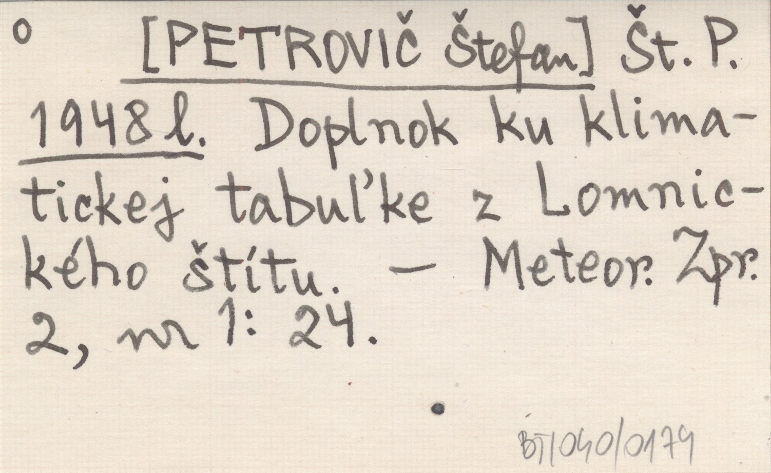 Doplnok ku klimatickej tabuµke z Lomnického ątítu.