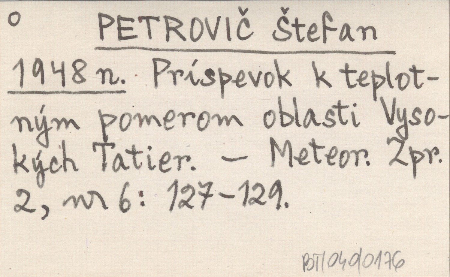 Príspevok k teplotnęm pomerom oblasti Vysokęch Tatier.