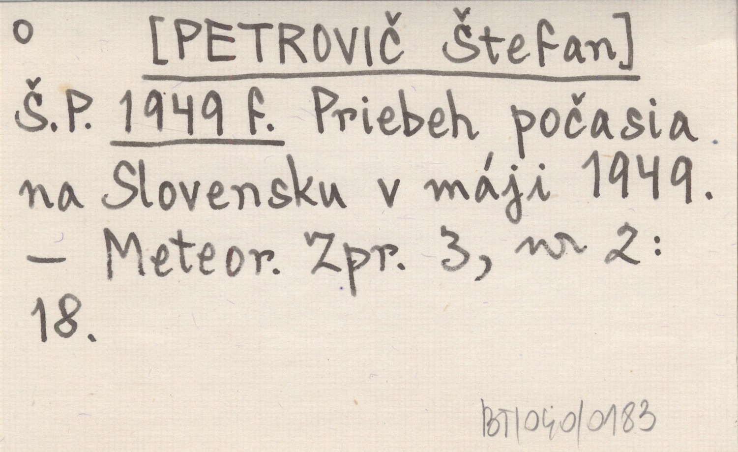 Š. P. [PETROVIČ Štefan] 1949 f Priebeh počasia na Slovensku v máji 1949.
