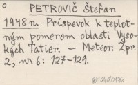 Príspevok k teplotným pomerom oblasti Vysokých Tatier.