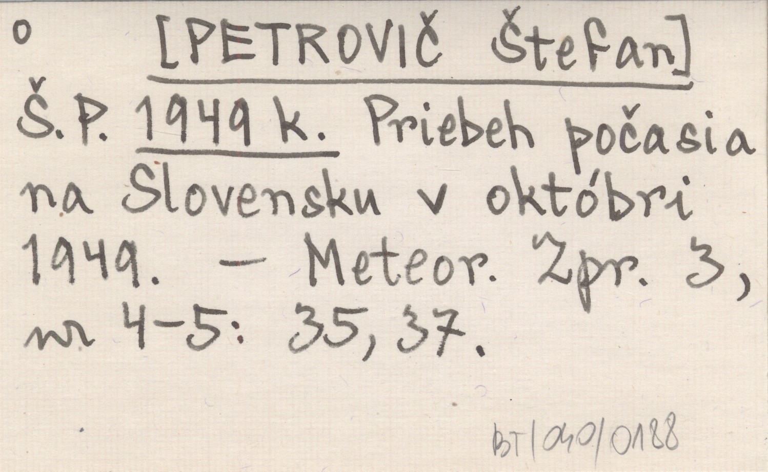 Š. P. [PETROVIČ Štefan] 1949 k Priebeh počasia na Slovensku v októbri 1949.