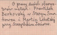Meteorologické Zprávy, 4, nr 5-6: 131, il. O pracy dwóch obserwatorów meteorologicznych: Frantiček Berkovskę w Starym Smokowcu i Martin Lehotskę przy Szczyrbskim Jeziorze.