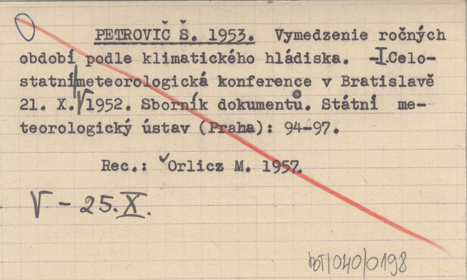 I. Celostatní meteorologická konference v Bratislavě 21.X.-25.X.1952. Sborník dokumentů. Státní meteorologický ústav, Praha , S. 94-97. REC: ORLICZ M. 1957