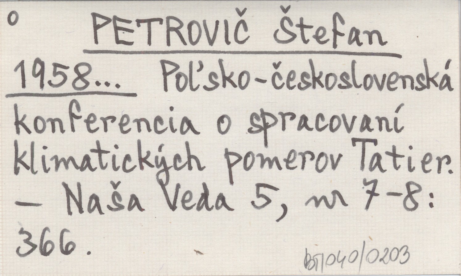 Po”sko-èeskoslovenská konferencia o spracovaní klimatickęch pomerov Tatier.