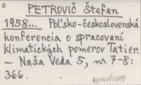Poµsko-československá konferencia o spracovaní klimatických pomerov Tatier.