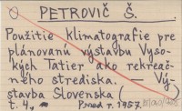 Pouľitie klimatografie pre plánovanú výstavbu Vysokých Tatier ako rekreačného strediska.
