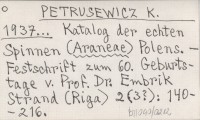 PETRUSEWICZ K. 1937... Katalog der echten Spinnen (Araneae) Polens.
