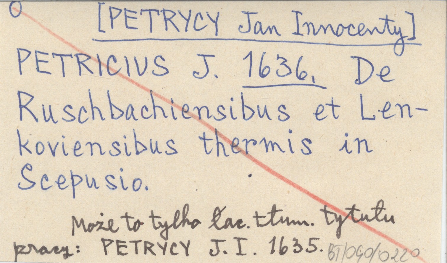 PETRICIUS J. [PETRYCY Jan Innocenty] 1636 De Ruschbachiensibus et Lenkoviensibus thermis in Scepusio.
