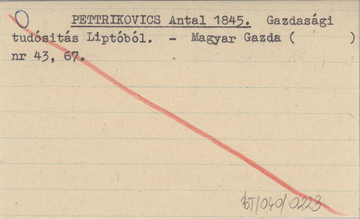 PETTRIKOVICS Antal 1845 Gazdasági tudósitás Liptóból.