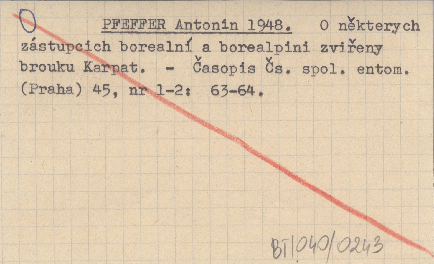 PFEFFER Antonin 1948 O některych zástupcich borealní a borealpini zviřeny brouku Karpat.