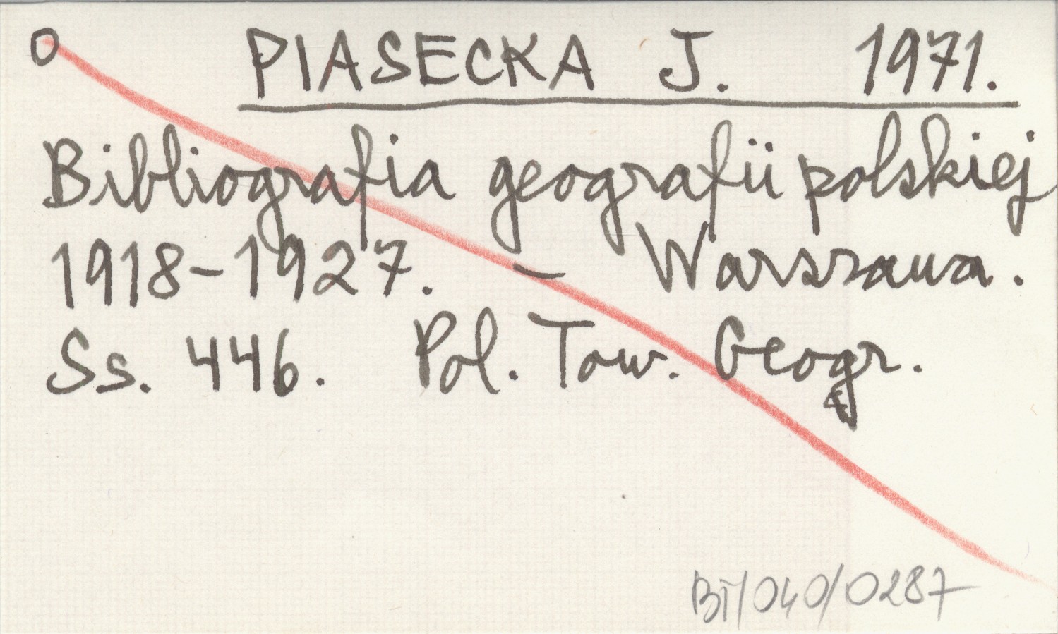 PIASECKA J. 1971 Bibliografia geografii polskiej 1918-1927.
