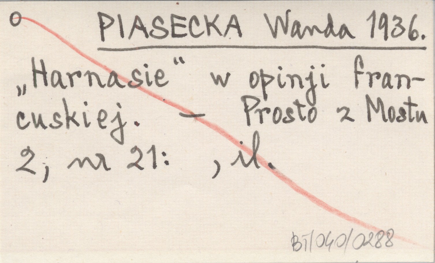 PIASECKA Wanda 1936 "Harnasie" w opinji francuskiej.