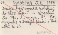 PIASECKA J. E. 1970 Dzieje hydrografii polskiej do 1850 roku.