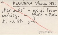 PIASECKA Wanda 1936 "Harnasie" w opinji francuskiej.