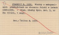 PIASECKI D. 1952 Wiatry o maksymalnych prędkościach na obszarze Polski w latach 1928-1938.