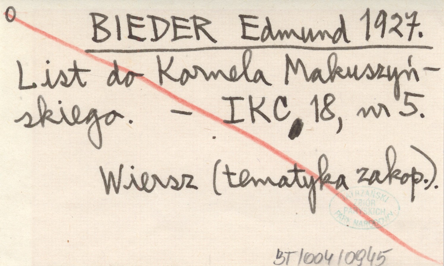 BIEDER Edmund 1927 List do Kornela Makuszyńskiego.