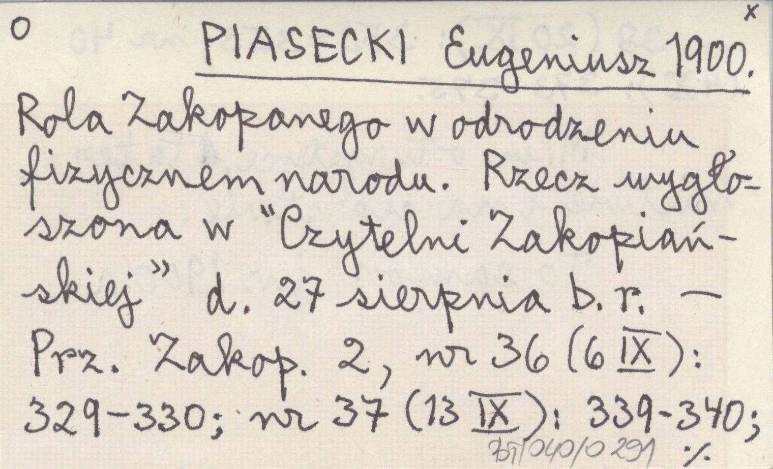 PIASECKI Eugeniusz 1900 Rola Zakopanego w odrodzeniu fizycznem narodu. Rzecz wygłoszona w "Czytelni Zakopiańskiej" d. 27 sierpnia b.r.