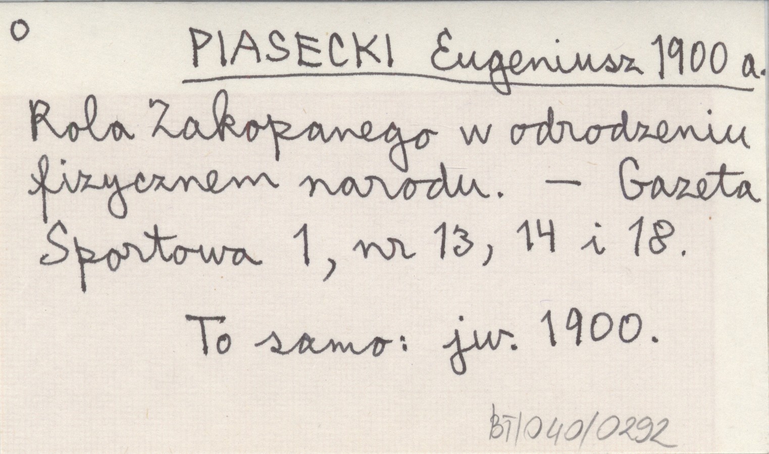 Gazeta Sportowa, 1, nr 13, 14, 18. To samo: jw. 1900