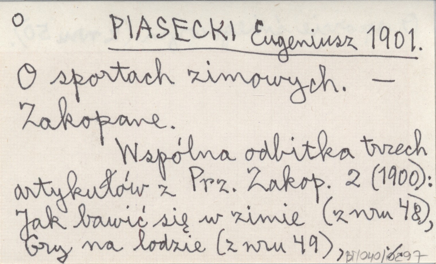 Zakopane , Wspólna odbitka trzech artykułów z Przeglądu Zakopiańskiego 2 (1900): Jak bawić się w zimie (z nr 48), Gry na lodzie (z nr 49), O sporcie śniegowym (z nr 50).