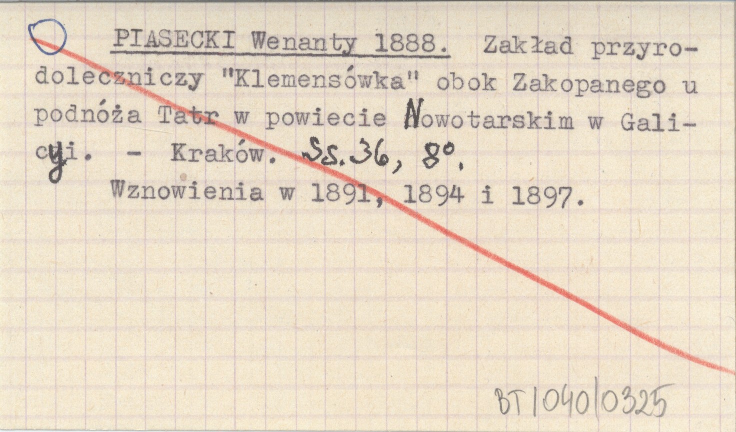 PIASECKI Wenanty 1888 Zakład przyrodoleczniczy "Klemensówka" obok Zakopanego u podnóża Tatr w powiecie Nowotarskim w Galicyi.