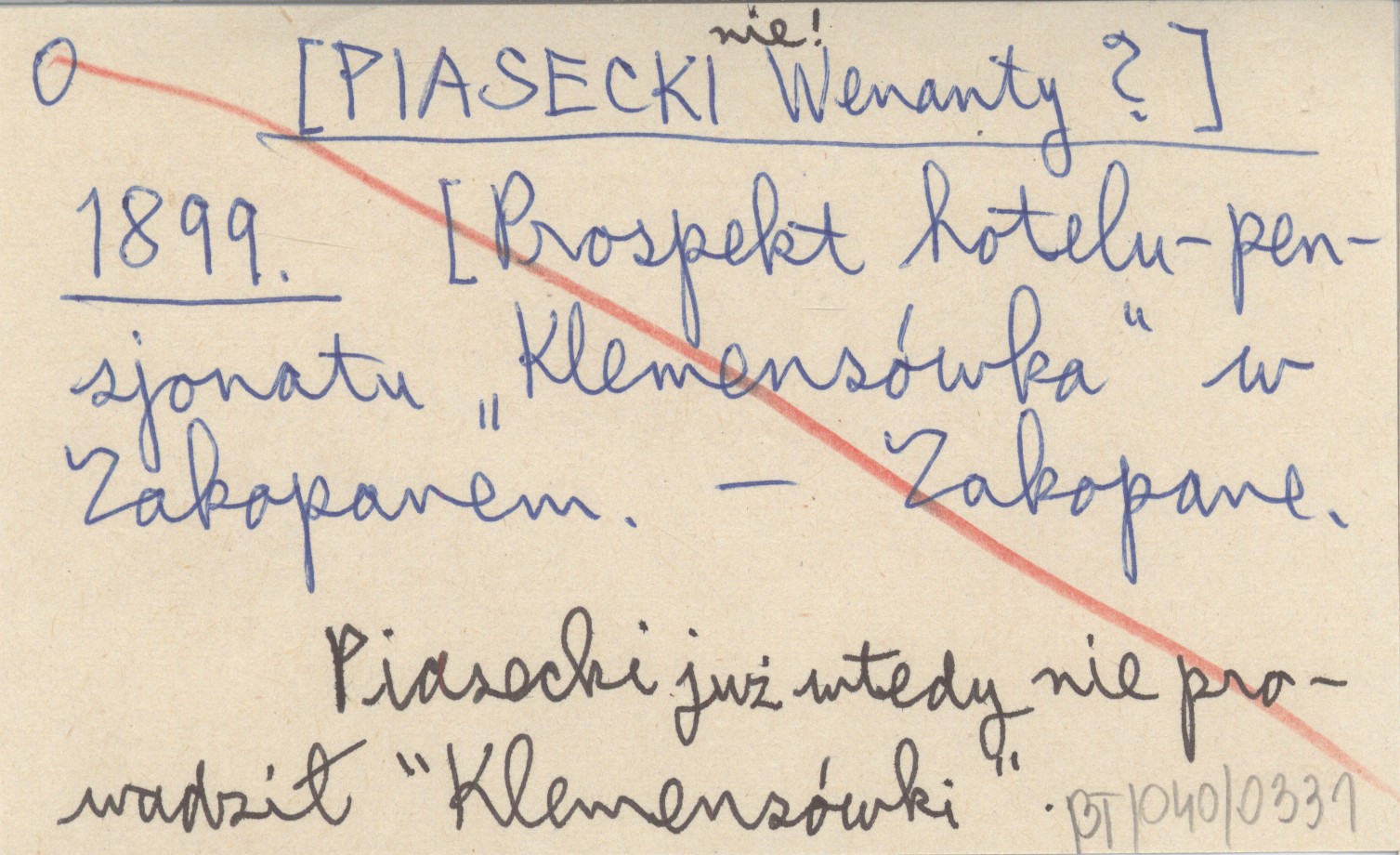 [PIASECKI Wenanty?] 1899 [Prospekt hotelu-pensjonatu "Klemensówka" w Zakopanem.