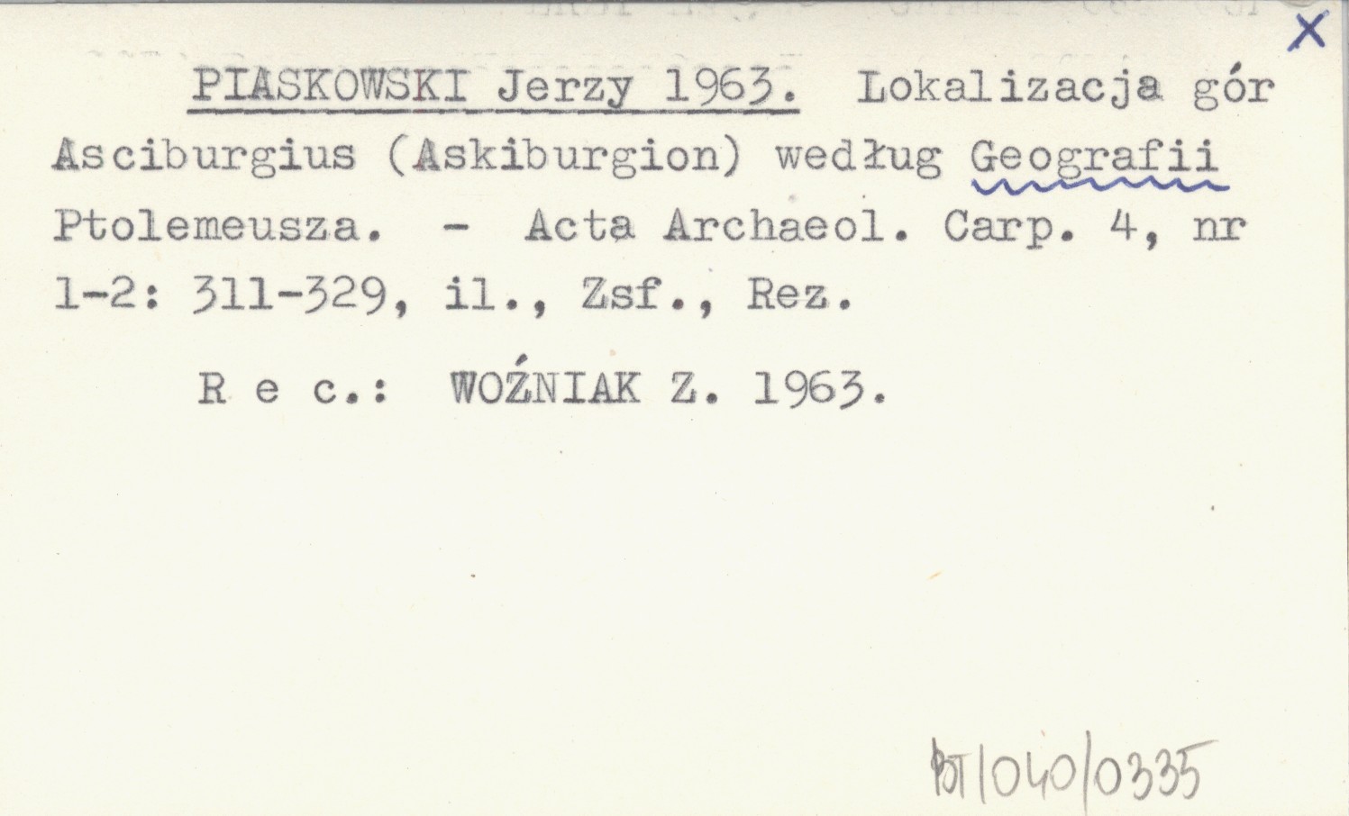 PIASKOWSKI Jerzy 1963 Lokalizacja gór Asciburgius (Askiburgion) według Geografii Ptolemeusza.
