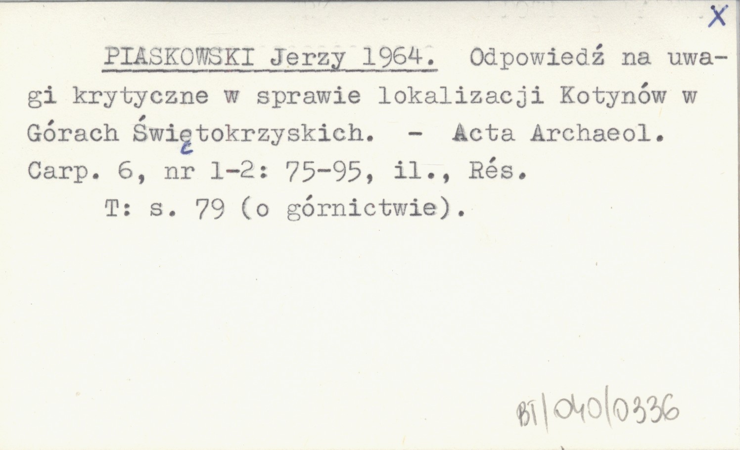 PIASKOWSKI Jerzy 1964 Odpowiedź na uwagi krytyczne w sprawie lokalizacji Kotynów w Górach Świętokrzyskich.