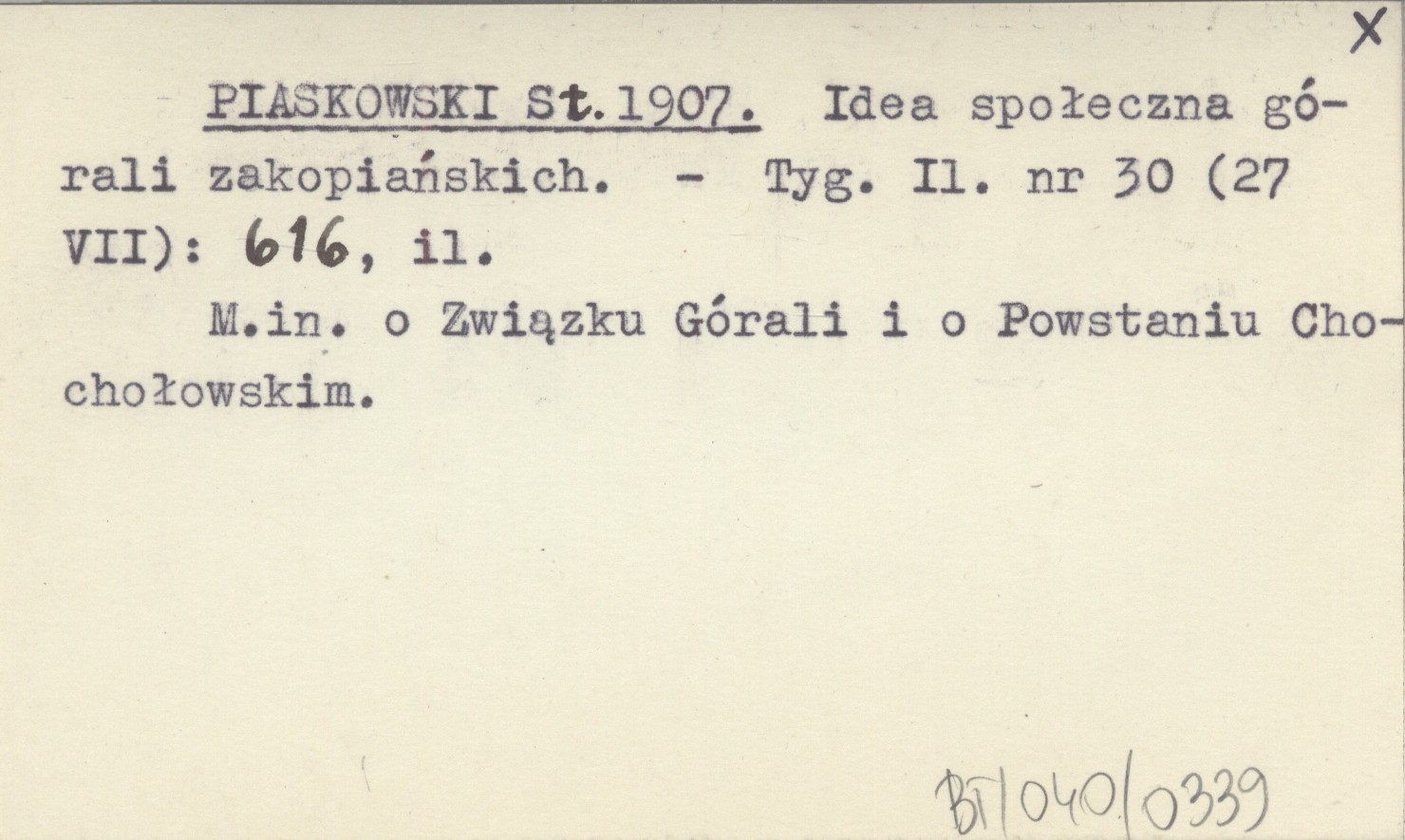 PIASKOWSKI St. 1907 Idea społeczna górali zakopiańskich.