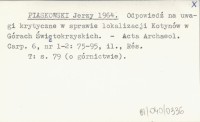 PIASKOWSKI Jerzy 1964 Odpowiedź na uwagi krytyczne w sprawie lokalizacji Kotynów w Górach Świętokrzyskich.