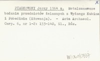 PIASKOWSKI Jerzy 1964 a Metaloznawcze badania przedmiotów żelaznych z Wyżnego Kubina i Pobedimia (Słowacja).