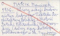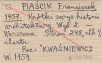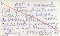 PIAŚCIK Franciszek 1933 Zbiory sekcji budownictwa ludowego Zakładu Architektury Polskiej i Historii Sztuki Politechniki Warszawskiej.