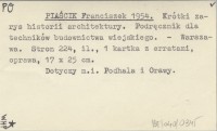 PIAŚCIK Franciszek 1957 Krótki zarys historii architektury.
