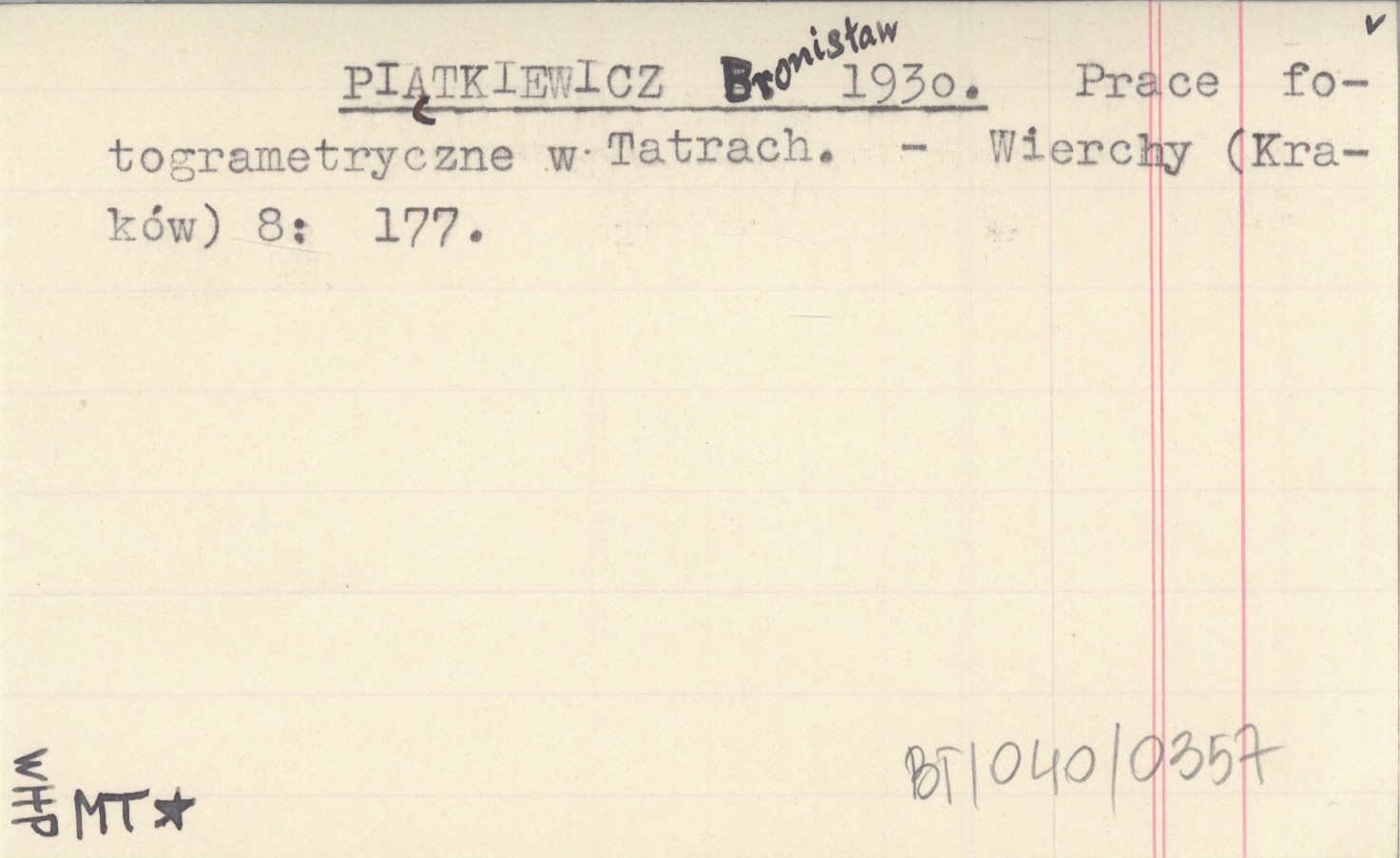 PIĄTKIEWICZ Bronisław 1930 Prace fotogrametryczne w Tatrach.