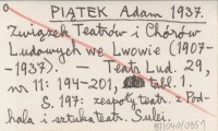 PIĄTEK Adam 1937 Związek Teatrów i Chórów Ludowych we Lwowie (1907-1937).