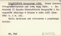 PIĄTKIEWICZ Bronisław 1929 Prace stereofotogrammetryczne nad nową mapą Tatr.